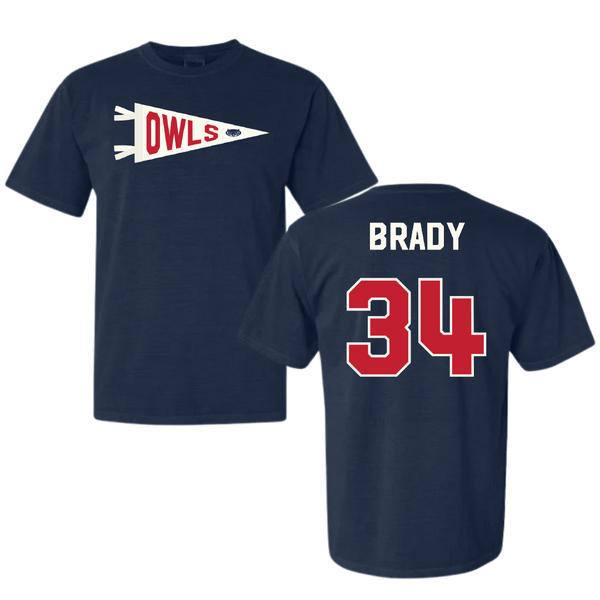 Florida Atlantic University Baseball Navy Pennant Comfort Colors Tee - #34 Carter Brady