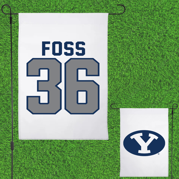 Brigham Young University Baseball White Garden Flag - #36 Carter Foss