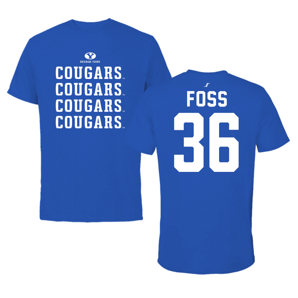 Brigham Young University Baseball Blue Gameday Tee - #36 Carter Foss