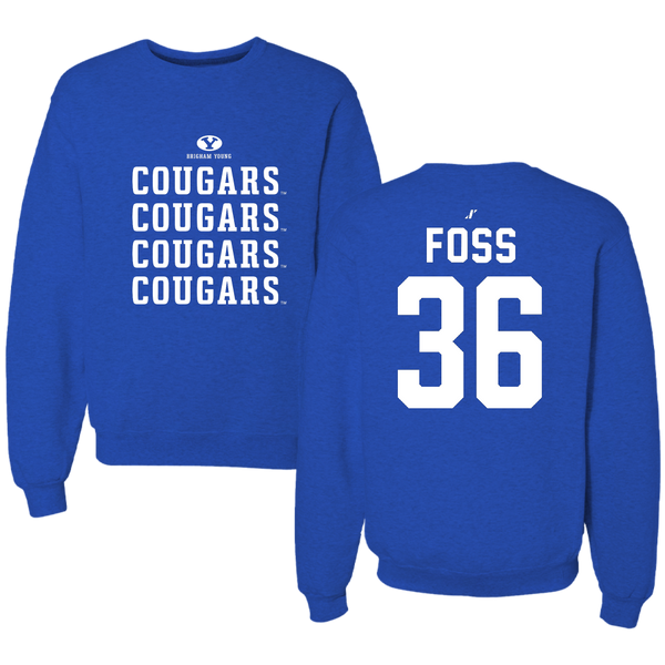 Brigham Young University Baseball Blue General Crewneck - #36 Carter Foss