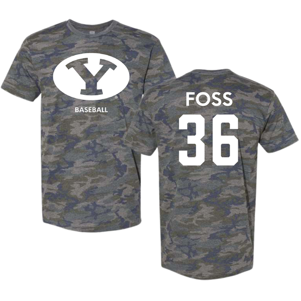 Brigham Young University Baseball Vintage Camo Tee - #36 Carter Foss