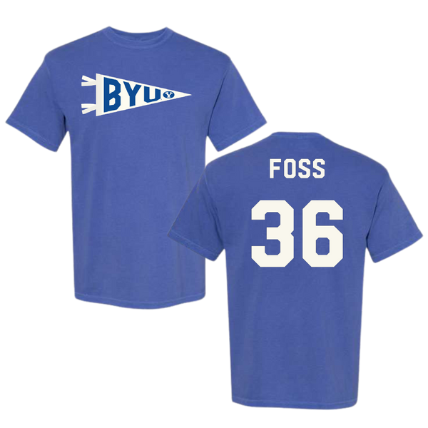 Brigham Young University Baseball Blue Pennant Comfort Colors Tee - #36 Carter Foss