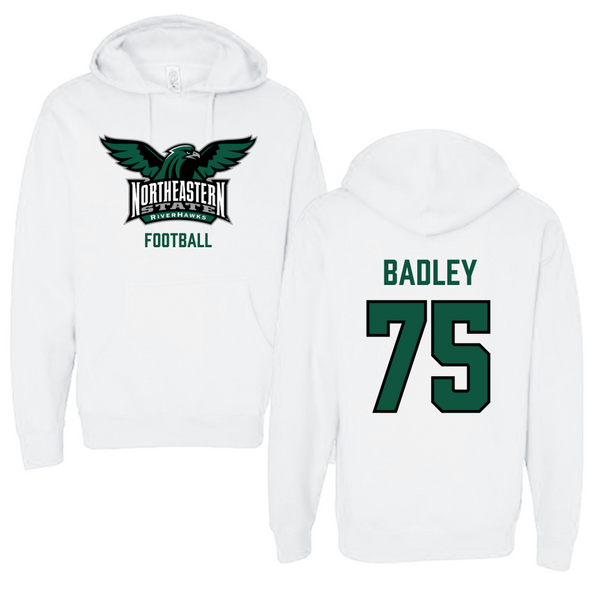 Northeastern State University Football White Hoodie - #75 Cayson Badley