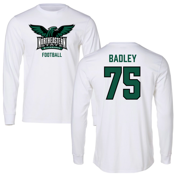 Northeastern State University Football White Long Sleeve - #75 Cayson Badley
