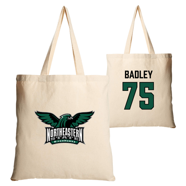 Northeastern State University Football Tan Canvas Tote Bag - #75 Cayson Badley