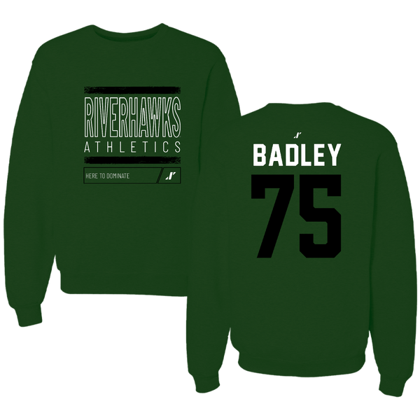 Northeastern State University Football Forest Green Dominate Crewneck - #75 Cayson Badley