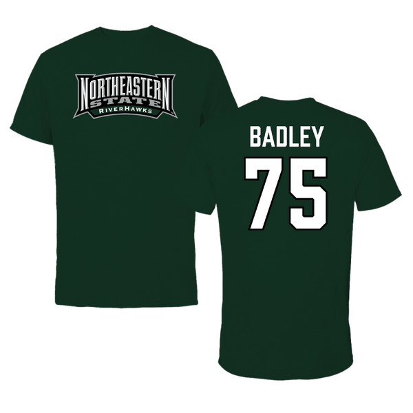 Northeastern State University Football Forest Green Block Tee - #75 Cayson Badley