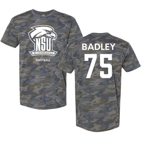 Northeastern State University Football Vintage Camo Tee - #75 Cayson Badley