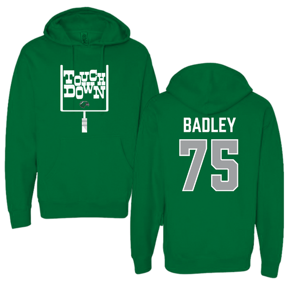 Northeastern State University Football Green Touchdown Hoodie - #75 Cayson Badley