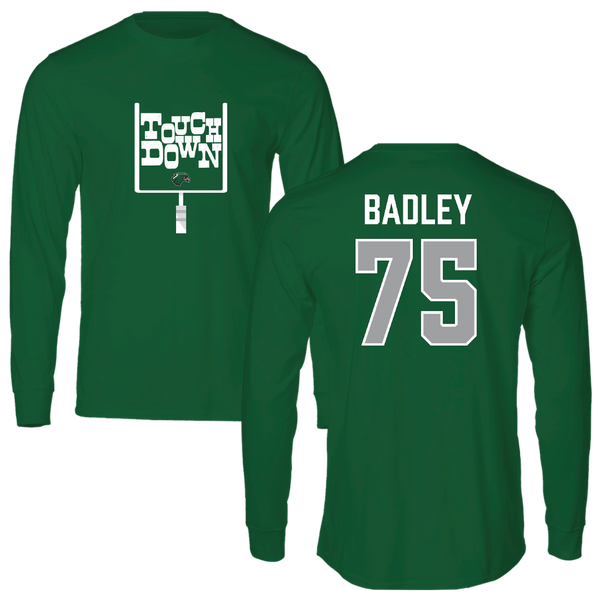Northeastern State University Football Green Touchdown Long Sleeve - #75 Cayson Badley