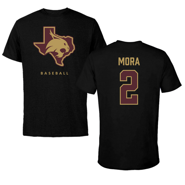 Texas State University Baseball Black Tee - #2 Chase Mora