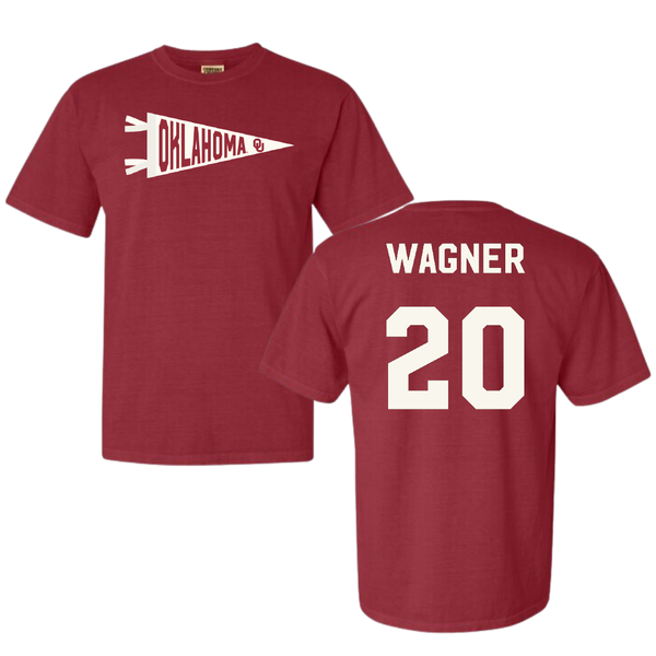 University of Oklahoma Soccer Crimson Pennant Comfort Colors Tee - #20 Chelsea Wagner