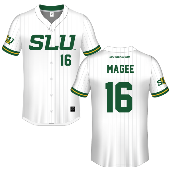 Southeastern Louisiana University White Pinstripe Button-Down Jersey - #16 Chloe Magee