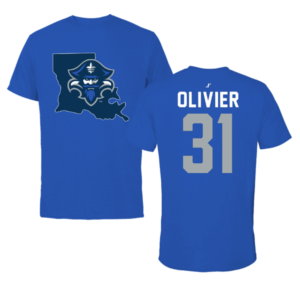 University of New Orleans Baseball Blue State Tee - #31 Chris Olivier