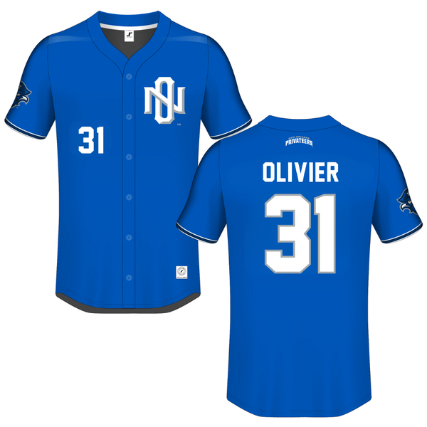 University of New Orleans Blue Button-Down Jersey - #31 Chris Olivier