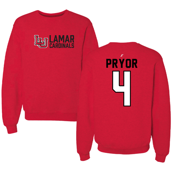 Lamar University Basketball Red General Crewneck - #4 Chris Pryor
