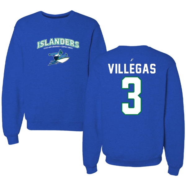 Texas A&M University-Corpus Christi Basketball Blue General Crewneck - #3 Christian Villegas