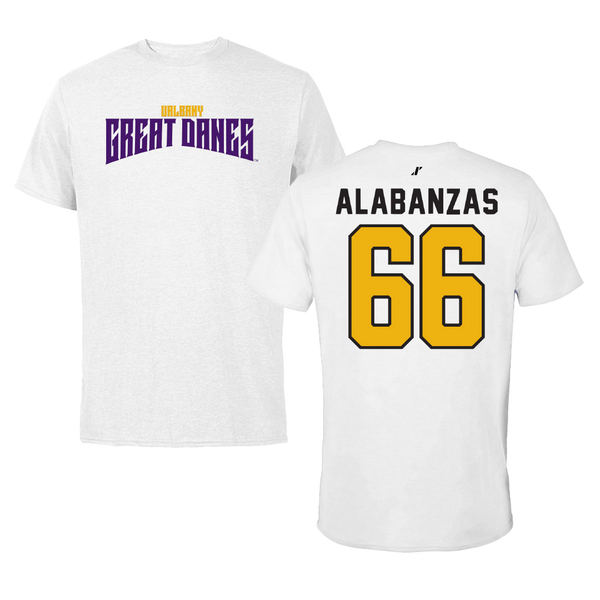 University at Albany Football White Classic Tee - #66 Christopher Alabanzas