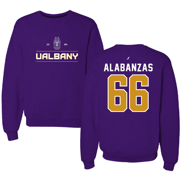 University at Albany Football Purple General Crewneck - #66 Christopher Alabanzas