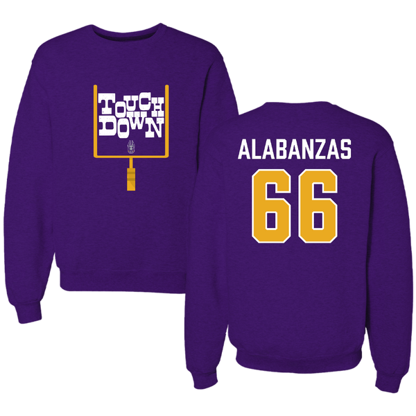 University at Albany Football Purple Touchdown Crewneck - #66 Christopher Alabanzas