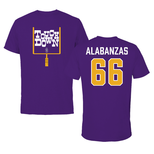 University at Albany Football Purple Touchdown Tee - #66 Christopher Alabanzas