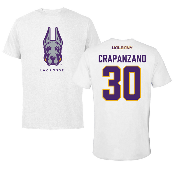 University at Albany Lacrosse White Classic Tee - #30 Christopher Crapanzano