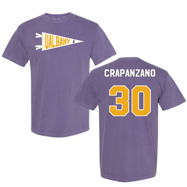 University at Albany Lacrosse Purple Pennant Comfort Colors Tee - #30 Christopher Crapanzano