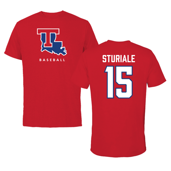 Louisiana Tech University Baseball Red Tee - #15 CJ Sturiale