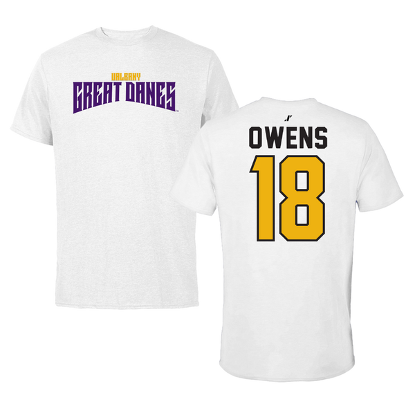 University at Albany Soccer White Mascot Tee - #18 Claire Owens