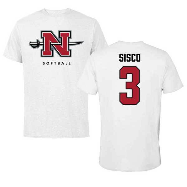 Nicholls State University Softball White Tee - #3 Claire Sisco