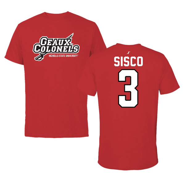 Nicholls State University Softball Red Tee - #3 Claire Sisco