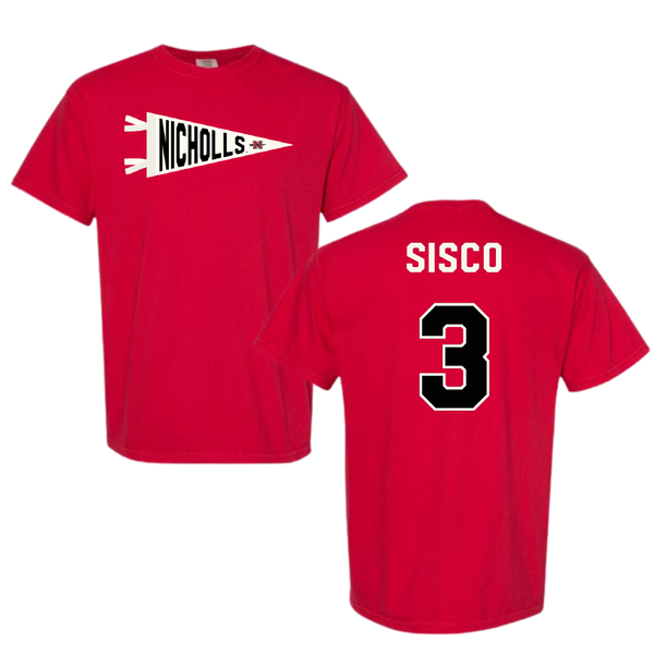 Nicholls State University Softball Red Pennant Comfort Colors Tee - #3 Claire Sisco