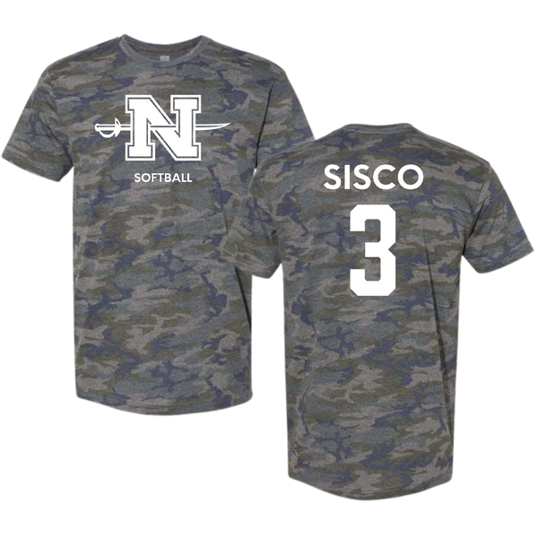 Nicholls State University Softball Vintage Camo Tee - #3 Claire Sisco