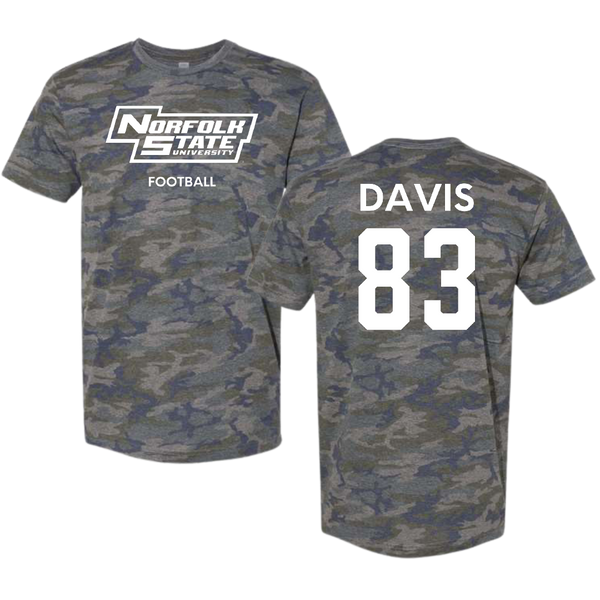 Norfolk State University Football Vintage Camo Tee - #83 Clifton Davis