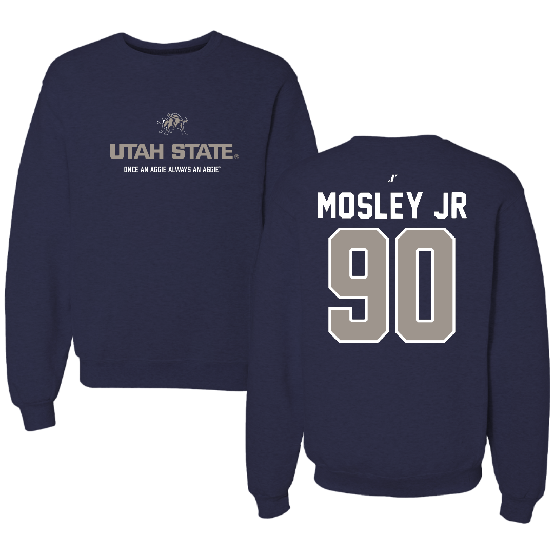 Utah State University Football Navy General Crewneck - #90 Clifton Mosley Jr
