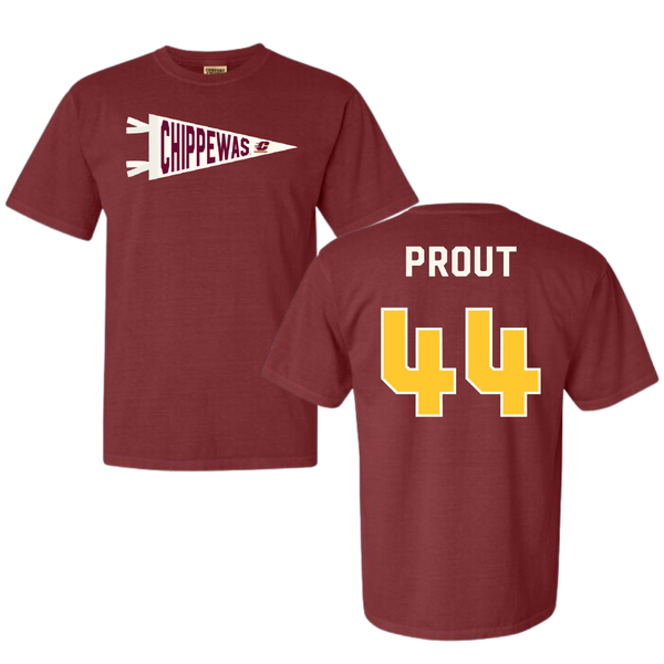 Central Michigan University Baseball Maroon Pennant Comfort Colors Tee - #44 Cole Prout
