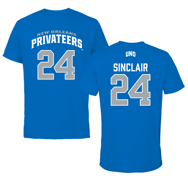 University of New Orleans Basketball Blue Tee - #24 Cole Sinclair