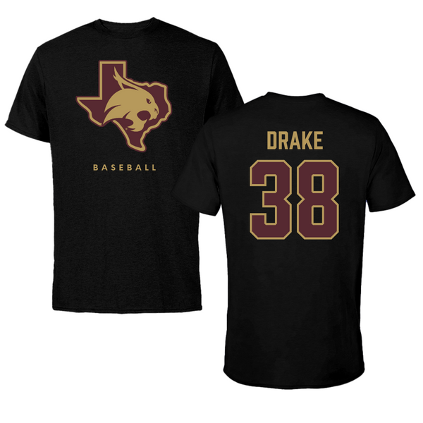 Texas State University Baseball Black Tee - #38 Colten Drake