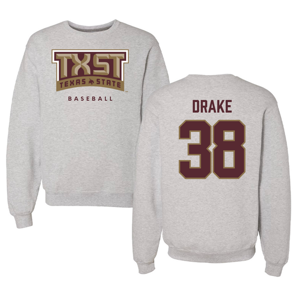 Texas State University Baseball Gray Crewneck - #38 Colten Drake