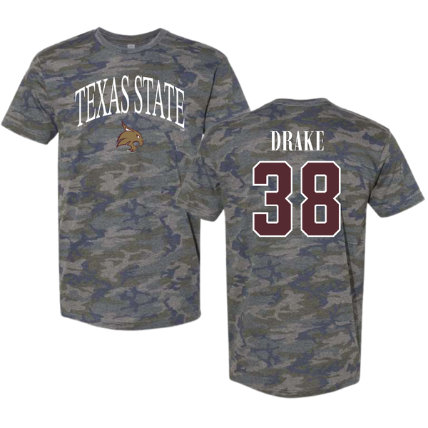Texas State University Baseball Vintage Camo Tee - #38 Colten Drake
