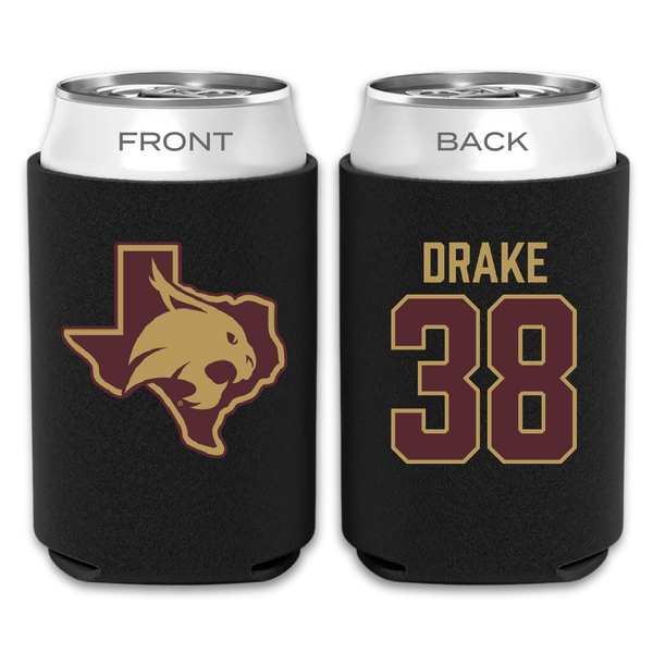 Texas State University Baseball Black Can Cooler - #38 Colten Drake