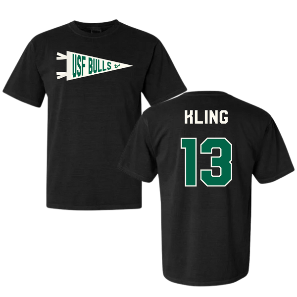 University of South Florida Baseball Black Pennant Comfort Colors Tee - #13 Corey Kling