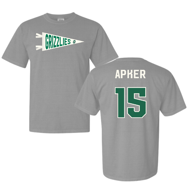 Adams State University Baseball Light Gray Pennant Comfort Colors Tee - #15 Cory Apker