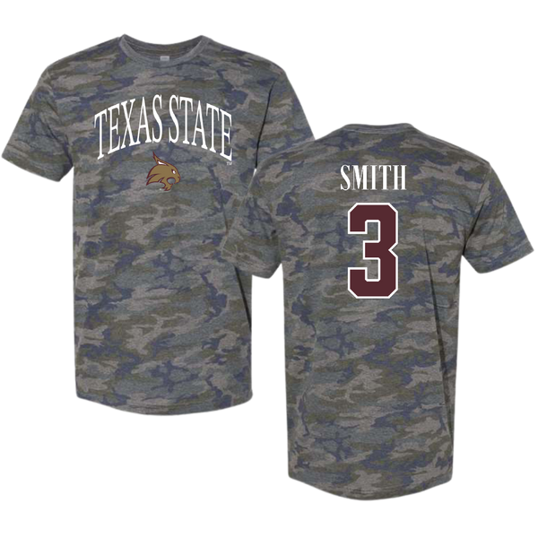 Texas State University Basketball Vintage Camo Tee - #3 Crystal Smith