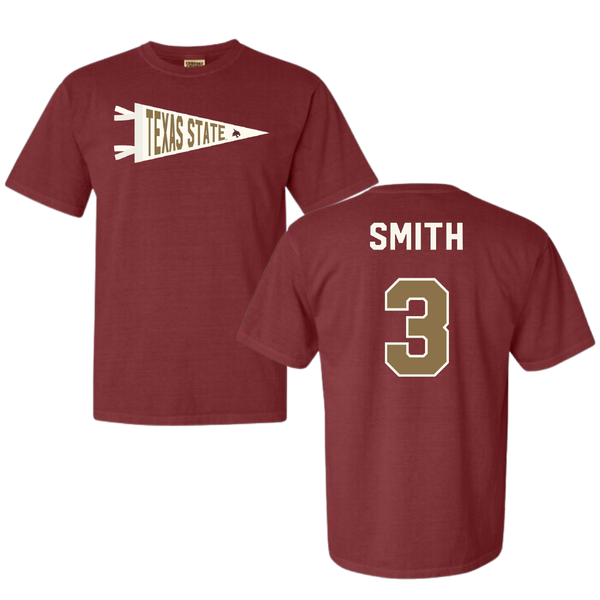Texas State University Basketball Maroon Pennant Comfort Colors Tee - #3 Crystal Smith