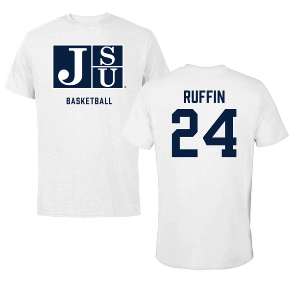 Jackson State University Basketball White Tee - #24 Daeshun Ruffin