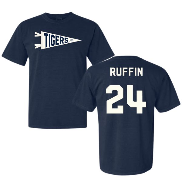 Jackson State University Basketball Navy Pennant Comfort Colors Tee - #24 Daeshun Ruffin