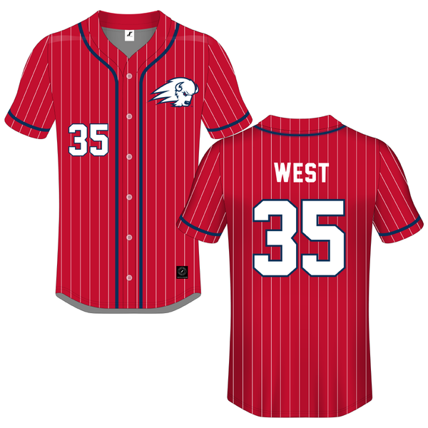 Utah Tech University Red Pinstripe Button-Down Jersey - #35 Dakoda West