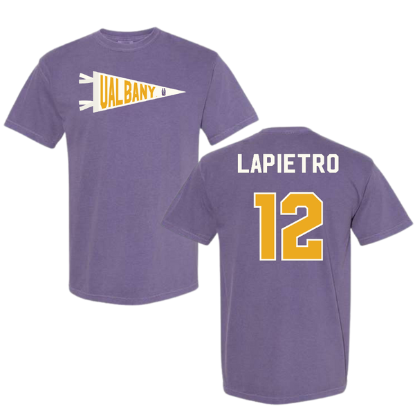 University at Albany Lacrosse Purple Pennant Comfort Colors Tee - #12 Darien LaPietro