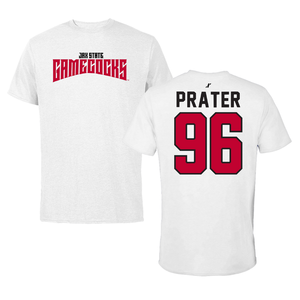 Jacksonville State University Football White Tee - #96 Darrell Prater